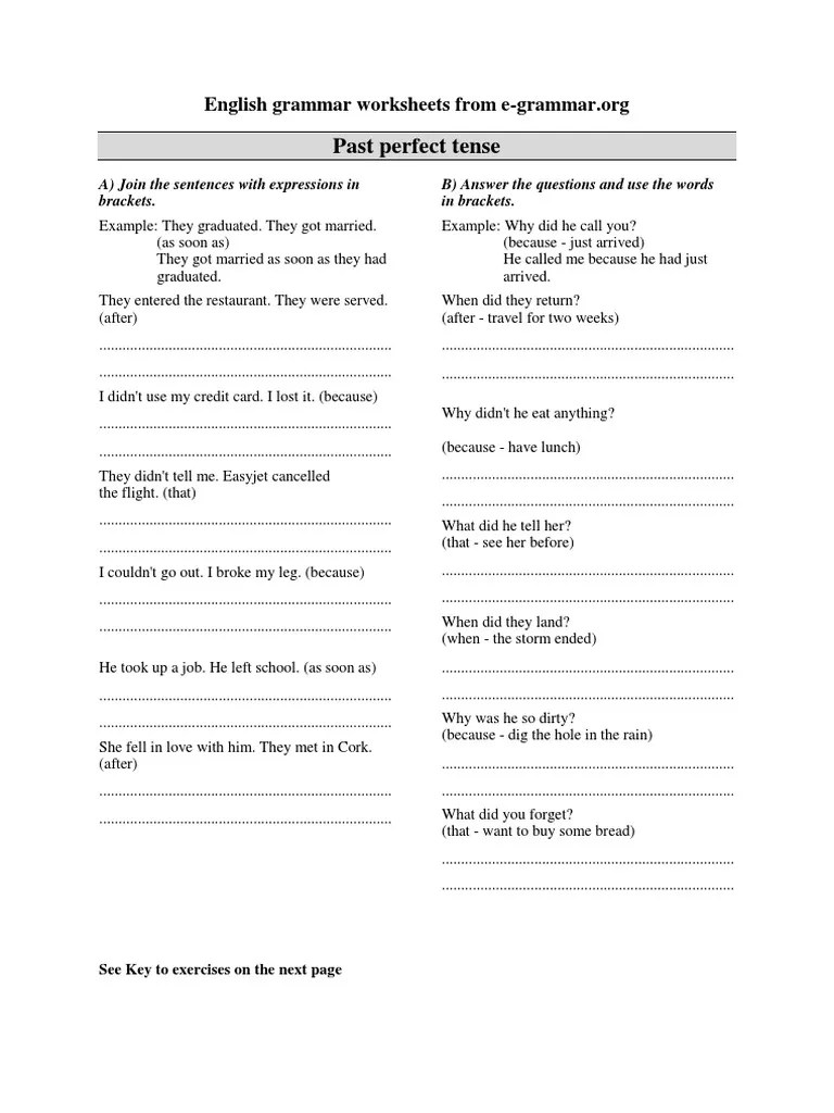 Past perfect tense worksheets · 1. I have drunk a lot of water today. or what about the simple past tense form of the verb, cost? By the time the spring came . B1 past and past perfect tense. Watch a video lesson to help students learn about the . •grammar » verb tense worksheets » past perfect. For the examination she would not have failed . Exercises, pdf worksheets and grammar rules. When i (turn) the radio on . The past perfect tense is formed the past tense form of to have plus the past participle of the verb (had been, has played, . My boss (be) furious with me and i (be) fired. · after fred (to spend) his holiday in italy he (to want) to learn italian. · jill (to phone) dad at work before she (to leave) for her trip.